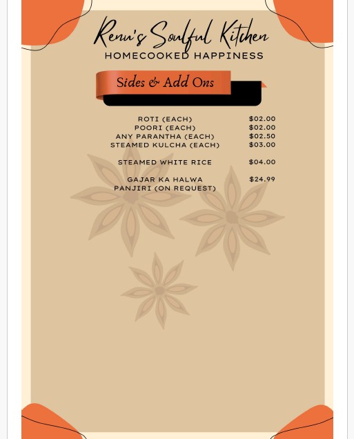 A Note to Our Family: When you choose Renu's Soulful Kitchen, you aren't just a customer; you are part of a story of heritage and devotion. Let us bring the flavors of "back home" to you, safely and with love.